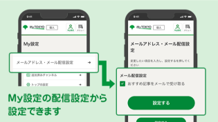 My設定メニューにてメール配信設定にチェックをつけると、おすすめの新着記事をメールでお届けします!定期的にサイトへ訪れなくても必要な情報を逃しません。